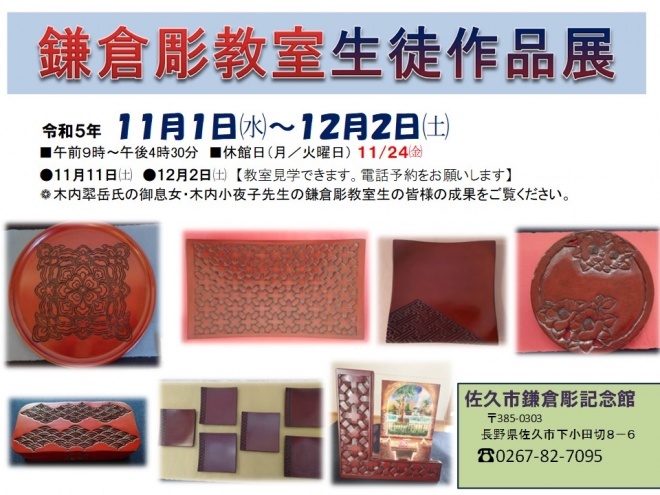 【鎌倉彫記念館】鎌倉彫教室生徒作品展(11/1〜12/2)(会期変更)