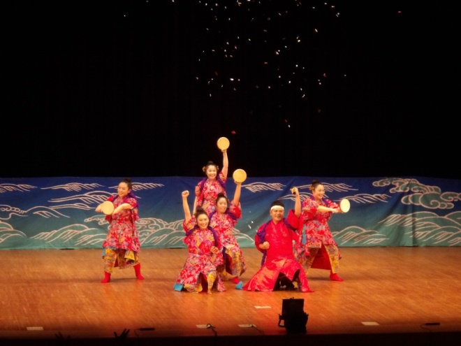 昨年もご好評をいただいた舞台。今年の舞台も明るくエネルギッシュな出演者の方々による沖縄の歌と踊り、バイオリン、三線、パーカッションの生演奏で、観る人の心を温かくしてくれる舞台となりました。観客の皆さんも手拍子などで一緒になって舞台を創るシーンもあり、ステージが一層輝きました。