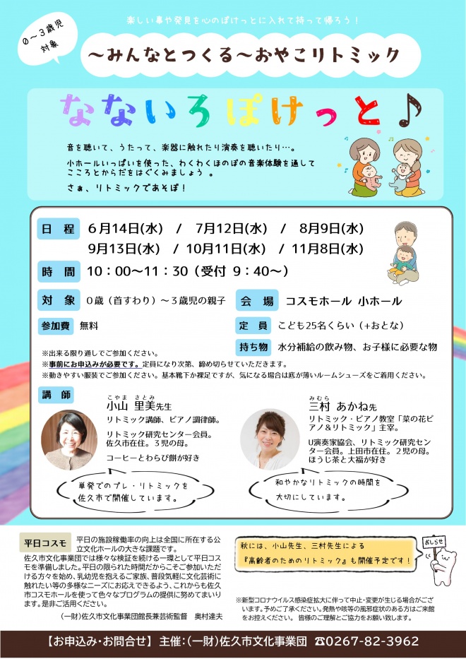 【終了しました】<平日コスモ>~みんなとつくる~おやこリトミック 「なないろぽけっと」